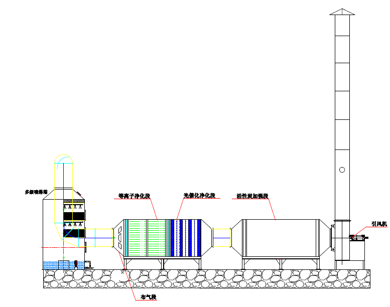 工藝設(shè)計(jì):噴淋-等離子光催化-活性炭