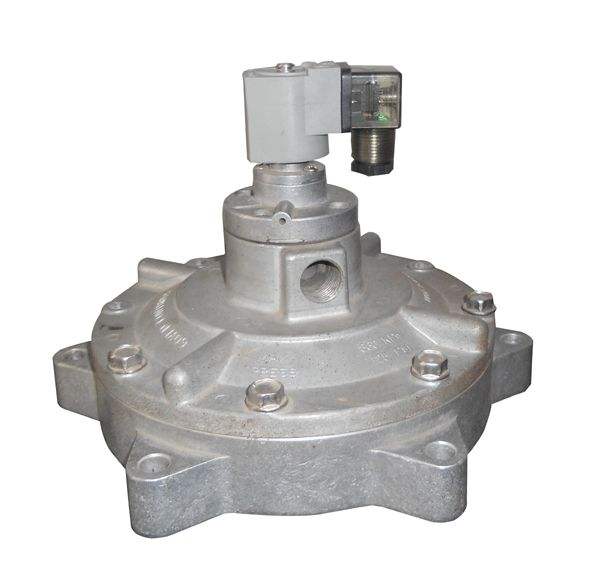電磁脈沖閥是按照電信號(hào)控制閥體卸荷孔的開啟和關(guān)閉,閥體卸荷時(shí),閥后腔內(nèi)壓力氣體排放,閥前腔內(nèi)壓力氣體被膜片上陰壓孔節(jié)流,膜片被抬起,脈沖閥進(jìn)行噴吹。閥體停止卸荷時(shí),壓力氣體通過阻尼孔迅速充滿閥的后腔,由于膜片兩面在閥體上受力面積之差,閥的后腔內(nèi),氣體作用力大,膜片能可靠的關(guān)閉閥的噴吹口,脈沖閥停止噴吹。電信號(hào)是以毫秒計(jì)時(shí),脈沖閥開啟的一瞬間,產(chǎn)生強(qiáng)大的沖擊氣流,從而實(shí)現(xiàn)瞬間噴吹。