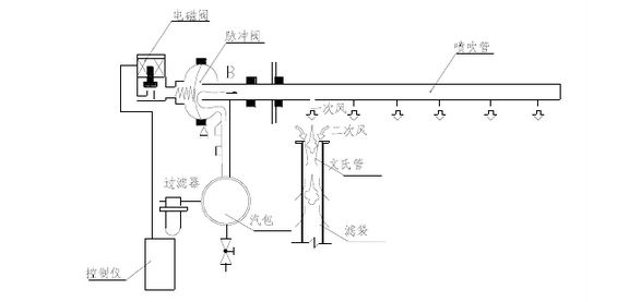 脈沖閥一端接壓縮氣包,另一端接噴吹管,脈沖閥背壓室接控制閥,脈沖控制儀控制著控制閥及脈沖閥開啟。當控制儀無信號輸出時,控制閥的排氣口被關閉,脈沖閥噴吹處于關閉狀態(tài);當控制儀發(fā)出信號時,控制排氣口被打開,脈沖閥背壓室外的氣體泄掉壓力降低,膜片兩面產生壓差,膜片因壓差作用而產生位移,買房閥噴吹打開,此時壓縮空氣從氣包通過脈沖閥經噴吹管小孔噴出(從噴吹管噴出的氣體為一次風)。當高速氣流通過文氏管誘導器誘導了數(shù)倍于一次風的周圍空氣(稱為二次風)進入濾袋,造成濾袋內瞬時正壓,實現(xiàn)清灰。