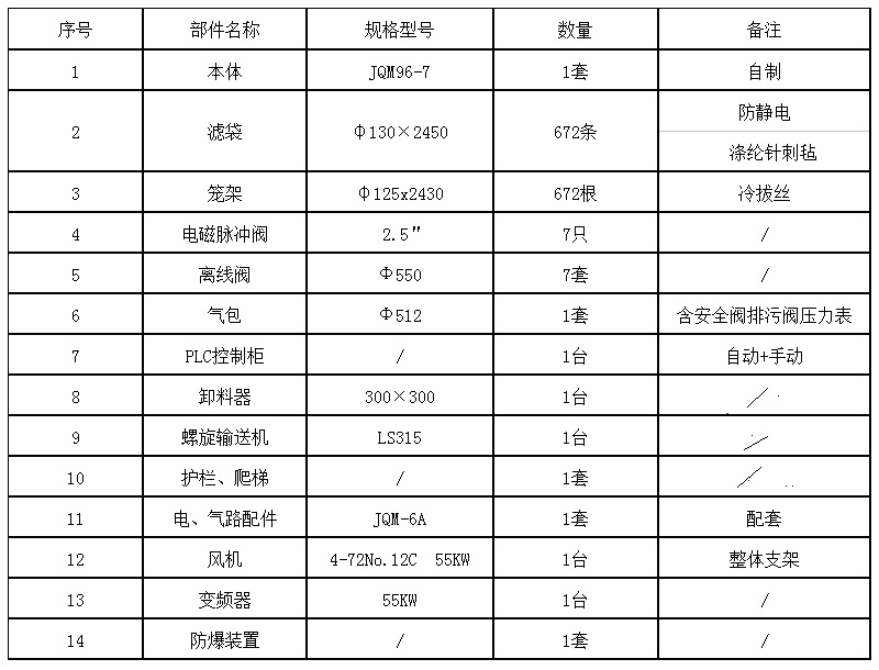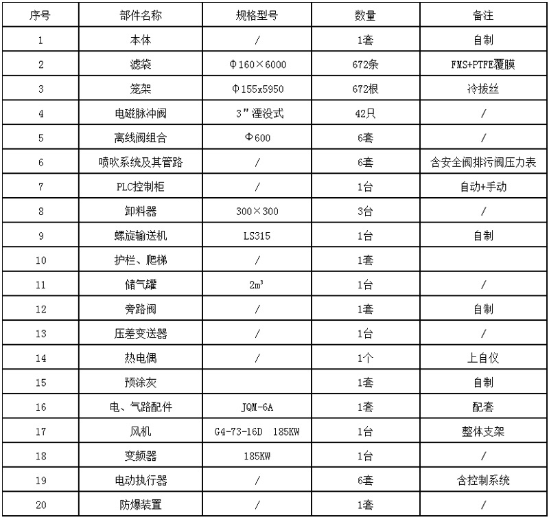 1、出口濃度:≤50mg/m3;5、除塵效率:≥99.9%。