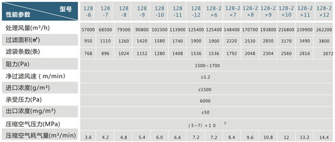 氣箱脈沖袋式除塵器PPC128型性能參數(shù)