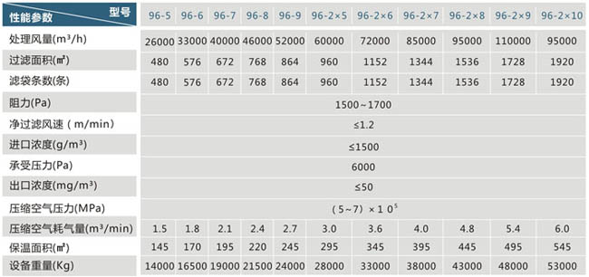 氣箱脈沖袋式除塵器PPC96型性能參數(shù)