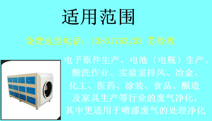 活性炭吸附器主要應(yīng)用于: 電子原件生產(chǎn)、電池(電瓶)生產(chǎn)、酸洗作業(yè)、實(shí)驗(yàn)室排風(fēng)、冶金、化工、醫(yī)藥、涂裝、食品、釀造及家具生產(chǎn)等行業(yè)的廢氣凈化,其中更適用于噴漆廢氣的處理凈化。